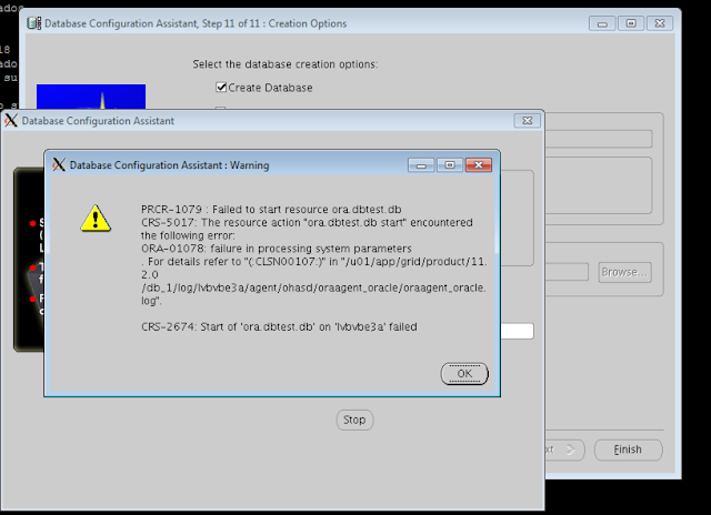 Então tentei criar um banco de testes via DBCA e recebi o erro abaixo: