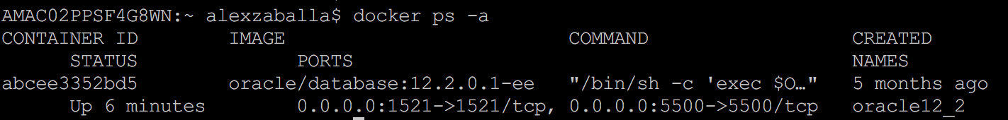 Estou usando um banco de dados Oracle 12.2 em um container Docker.